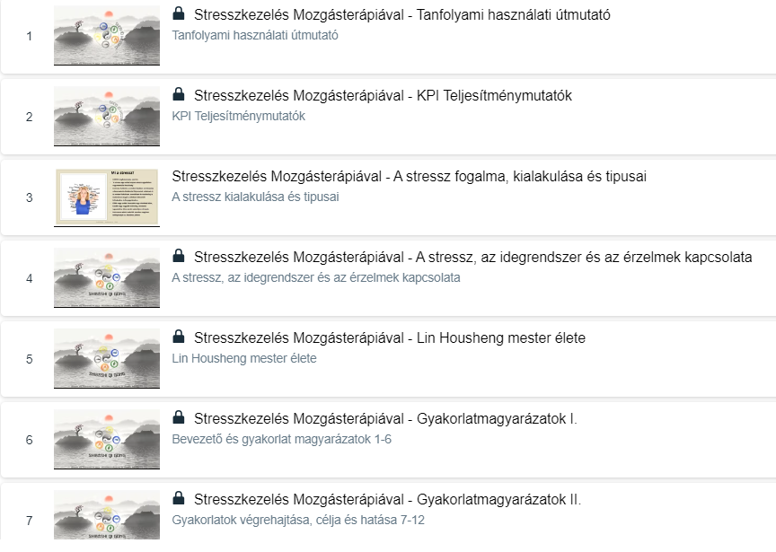 Az alábbi fotón megtekintheted a tanfolyam szerkezetét.